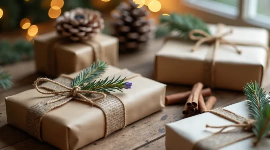 L’esprit de Noël se niche aussi dans les détails, comme l’emballage des cadeaux. Prenez le temps de créer de beaux paquets en utilisant des rubans de tissu, des éléments naturels (branche de houx, tranche d’orange séchée) ou en testant la technique japonaise du Furoshiki, qui consiste à emballer les présents dans du tissu. C’est une manière créative, écologique et personnelle de prolonger le plaisir d’offrir.
