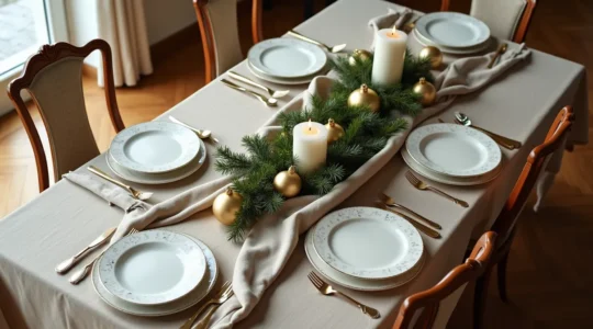 La table du réveillon est un lieu de partage et de convivialité qui mérite sa propre mise en scène. Pas besoin de surcharger : un joli chemin de table, un centre de table confectionné avec des branchages et quelques bougies peuvent suffire à créer un décor spectaculaire. Des marque-places personnalisés ou des pliages de serviettes originaux sont des attentions qui toucheront vos invités.