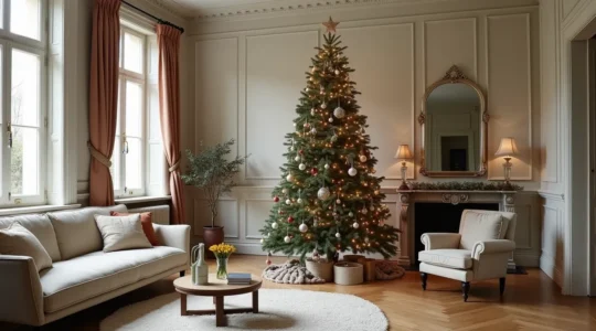 Attention à la sécurité : Assurez-vous que vos guirlandes électriques sont en bon état, ne surchargez pas les multiprises et placez le sapin à distance de toute source de chaleur directe comme une cheminée ou un radiateur.